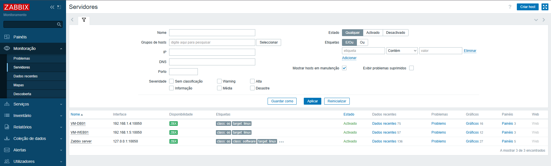The environment is continuously monitored by internal systems, tracking availability, service status, and operational metrics.